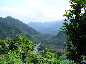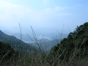 吃完飯就繼續往前啦~稍微看了一下...路標說往頭城應該沒有很遠,所以我就猜說大概七到八公里就到了吧?沒想到接下來就是傳說中的"X的!我的下坡勒?"的連續上坡,加上這時候太陽已經開始露臉了,開始有汗流浹背的感覺,讓原本山間那種微涼的天氣完完全全被略帶悶熱的情況取代了,山路一直蜿蜒,每繞過一座山都告訴自己..."阿~對面那座山繞過去就可以看到蘭陽平原啦~接下來就都是下坡啦~"結果證明這想法實在是太起泡了(每日一詞"起泡"= adj. "耍喜憨的樣子"),結果是走了12km左右才到石牌縣界,不過整體來說我覺得以後還是會想來走走這條路線,少了行李的負擔其實應該還不錯,因為北宜公路現在的車實在是非常的少,只有少數的貨車砂石車遊覽車會路過而已...