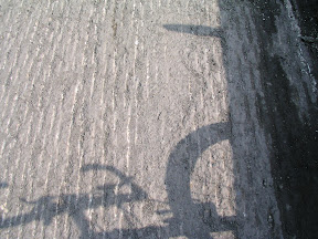 好爛的路面還有我腳踏車的影子
