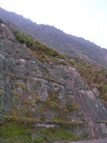 路邊的山壁...感覺隨時會有落石掉下來的感覺...