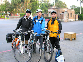 今天一大早原本約早上7:00在台大校門口出發,之後再吃早餐阿怎麼樣的,不過裝了行李的馬鞍袋要固定上腳踏車真的是一件有難度的事情...所以不小心就拖了一下,大約7:20左右才到達校門口,這時候王大尾似乎已經有點要砍人的感覺,所以當然就是廢話不多說,跟小貓拿了乳液還有跟他簡單的說掰掰之後就出發了...話說還遇到賴阿胖剛好要搭遊覽車到花蓮...真是巧阿~