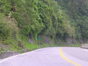 接下來就是九彎十八拐啦~原本以為大概頂多五公里吧?沒想到是十一公里的連續下坡,中間還有一堆180度的彎,我時速一直不敢放太快,大概都維持在30~40km/h左右吧...不過到了山下全身發冷,因為有幾個彎跟砂石車擦身而過實在是有點可怕@@...