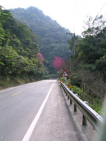 北宜公路一景,櫻花開得滿樹很漂亮