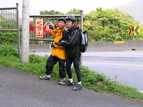 在蘇花公路起點沒多遠的砲台山路標....為了應景來一張傳說中的"啟泡砲台山"合照>O<~~